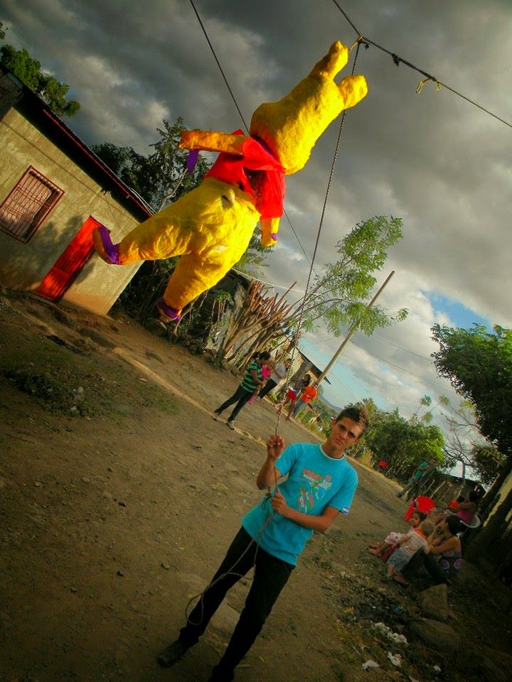 In Nicaragua, Jairo explained to us, many people make piñatas to sell for side money. Many times the materials are inferior because that’s all they can afford. The pooh we had purchased was actually one of the better piñatas he had seen, Jairo commented, as the Mexican side of the team exchanged incredulous looks. The insides were stuffed with newspaper, but there was enough space for a bit of candy, which was the most most people could afford. Unfortunately, it was not enough space for the eight bags of candy we had bought for the event, so Ruth and Cecy began removing newpaper from the unlikely piñata, which I dubbed Pika-Pooh, for his resemblance to both Winnie-the-Pooh and Picachu.